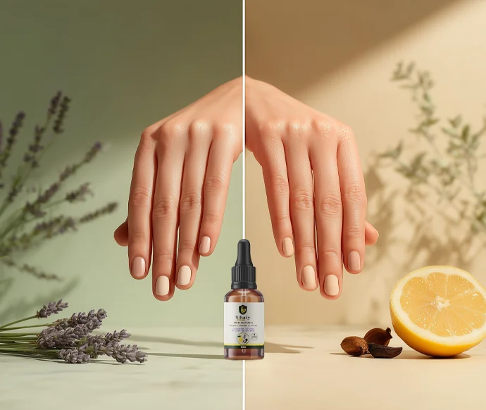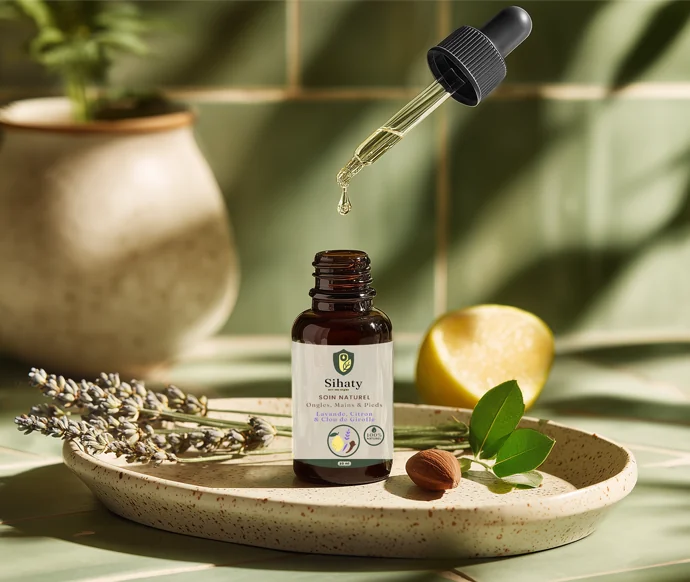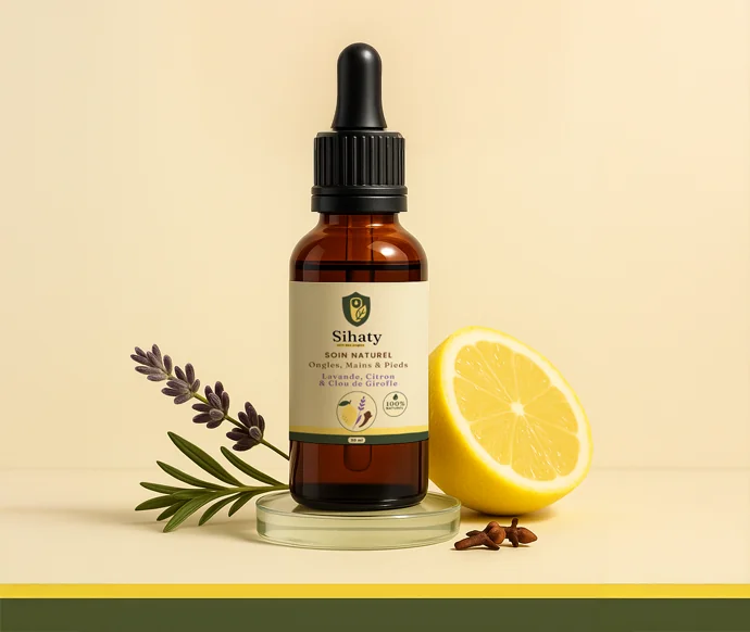 Ce soin cosmétique concentré améliore visiblement l’apparence des ongles épaissis et jaunis. Sa formule 100 % naturelle associe la lavande apaisante, le citron ravive-éclat et le clou de girofle purifiant, pour une surface plus lisse, un rose translucide et des cuticules hydratées. Déposez 1–2 gouttes sur l’ongle et son contour matin et soir ; massez jusqu’à absorption et laissez agir. En 6–8 semaines d’utilisation régulière, vos ongles retrouvent éclat et netteté. Sans parabènes ni parfums synthétiques. Satisfaction garantie.